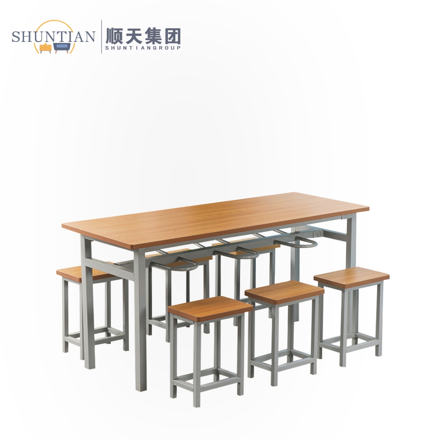 CZY-61 Six-person square tube hanging stool dining table and chairs